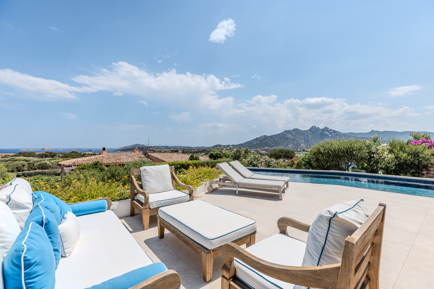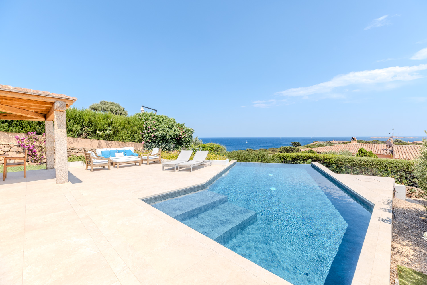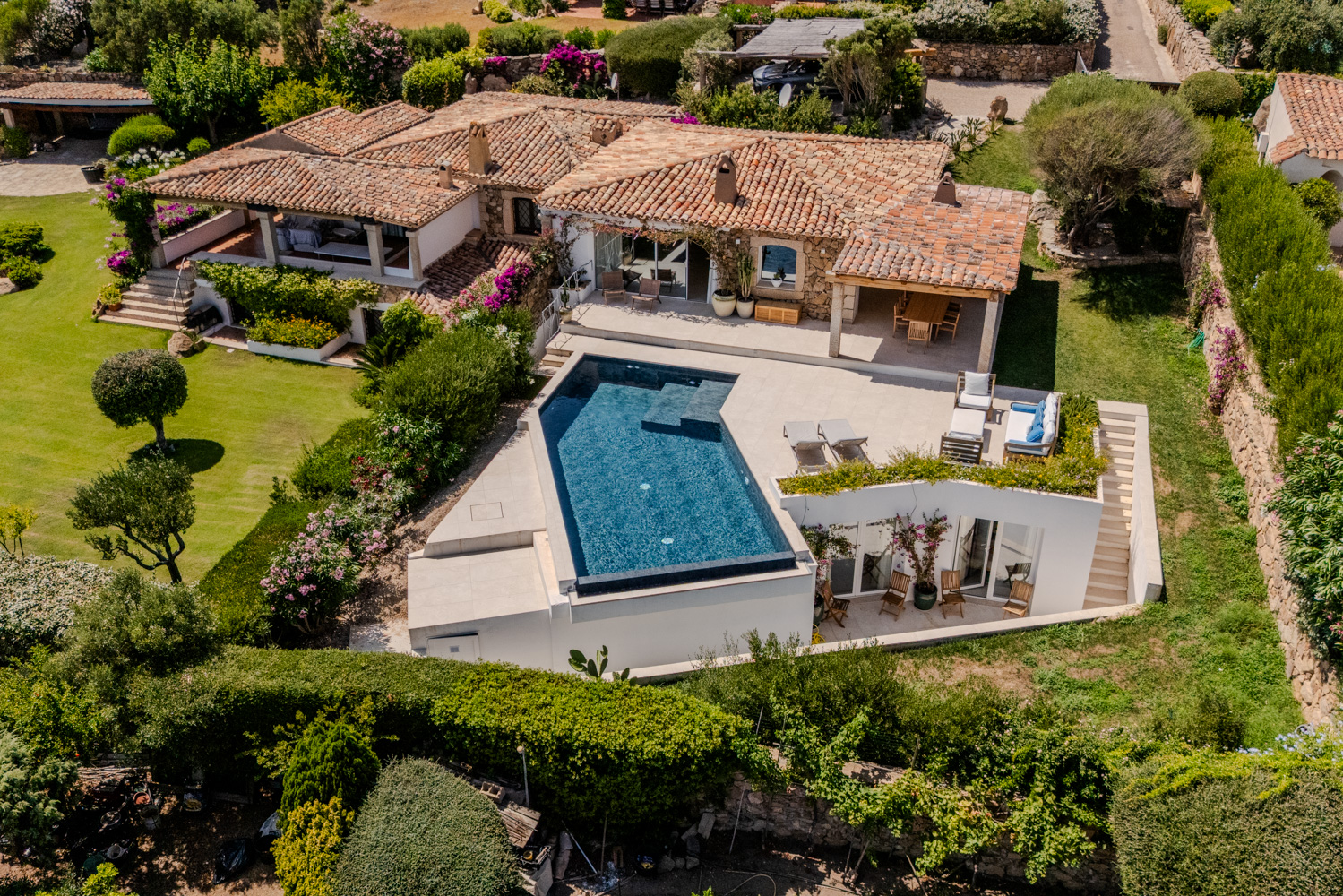 Porto Cervo in Località Cala Granu, Immersa nel verde e progettata per offrire comfort e raffinatezza, questa elegante villa bifamiliare con vista mare si sviluppa su due livelli principali e dispone di ambienti ampi, luminosi e rifiniti con cura. Al piano terra si apre una spaziosa zona living con soggiorno e cucina a vista, due camere da letto, due bagni e un raffinato patio esterno con area barbecue, perfetto per cene all’aperto in totale relax. Il giardino privato ospita una splendida piscina riscaldata, fruibile tutto l’anno, affiancata da una zona solarium attrezzata con lettini e divani per momenti di puro benessere. Al piano seminterrato, completamente indipendente e pensato per garantire massima privacy, ci sono altre due camere matrimoniali, ognuna con bagno en suite e terrazza privata arredata. Completa la proprietà una camera di servizio con bagno al piano interrato, ideale per lo staff o per accogliere ospiti, oltre a due posti auto coperti.